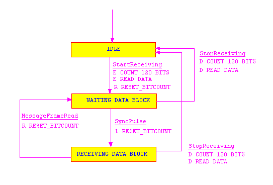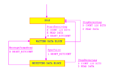 SA/VHDL specification consists of hierarchical data flow diagrams (DFDs) controlled with state transition diagrams (STDs). Typical pair of a data flow and its controlling state transition diagram on lowest hierarchical level is shown on figure 1 and 2.